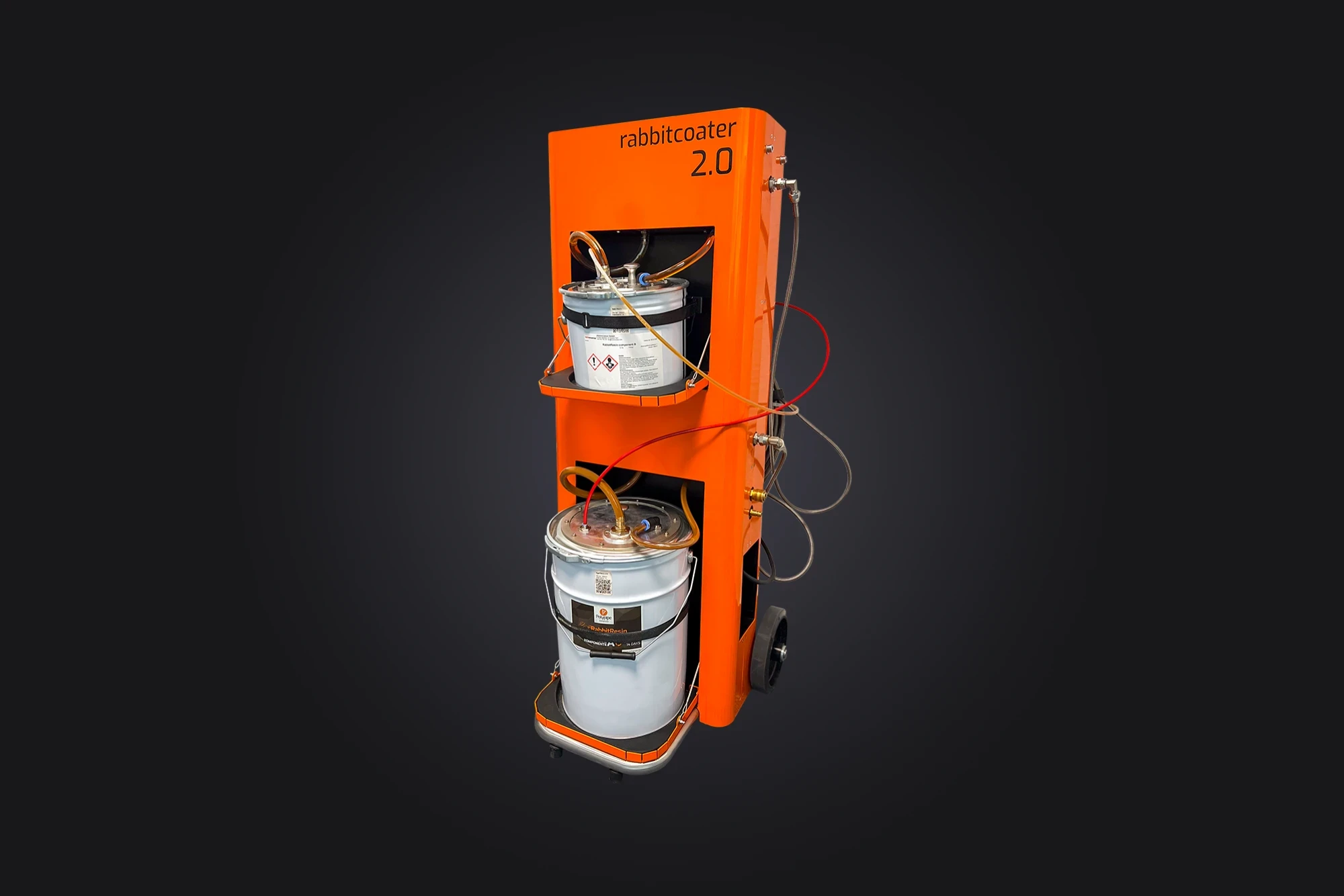 Durch die austauschbaren Harz- und Härter-Eimer ist jederzeit frisches Material vorhanden. Ebenfalls entfallen lästige Tankreinigungen.
